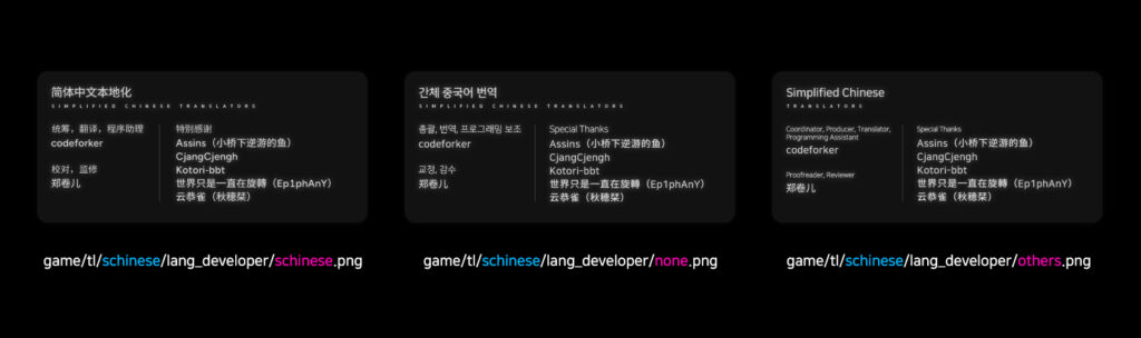 맨 뒤의 ⑥버전은, 언어 패치의 버전이 올라갔을 때(예를 들면, 문자열에 변경 사항이 있을 때) 확인을 위해 변경할 수 있는 구분자입니다.